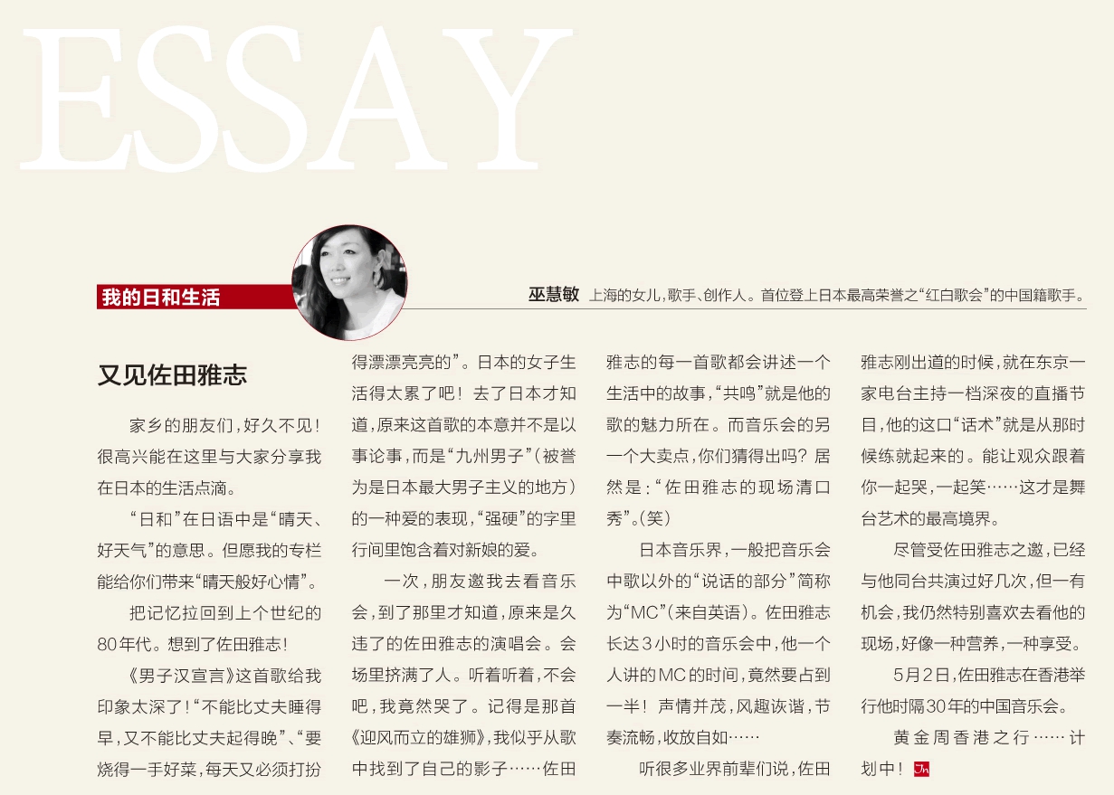 雑誌「上海電視(上海テレビ)」にて2月より aminの連載がスタートします!乞うご期待!