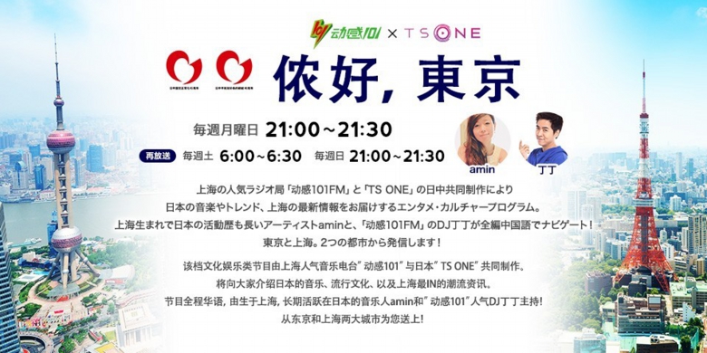 上海の人気ラジオ局「動感101」と東京FMのデジタル放送「TS ONE」の日中共同制作により日本の音楽やトレンド、上海の最新情報をお届けするエンタメ・カルチャープログラム「侬好、東京」が2017年4月からスタート。